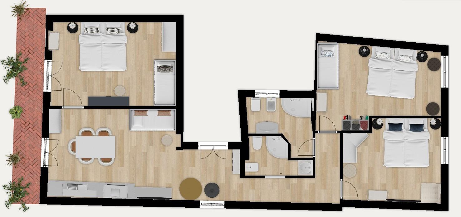 Appartamento spazioso e luminoso di 108 mq, ideale per famiglie o gruppi che desiderano soggiornare nel cuore autentico di Roma senza rinunciare al comfort. Gli ambienti sono ampi e ben distribuiti, pensati per garantire privacy e funzionalità anche durante soggiorni prolungati.